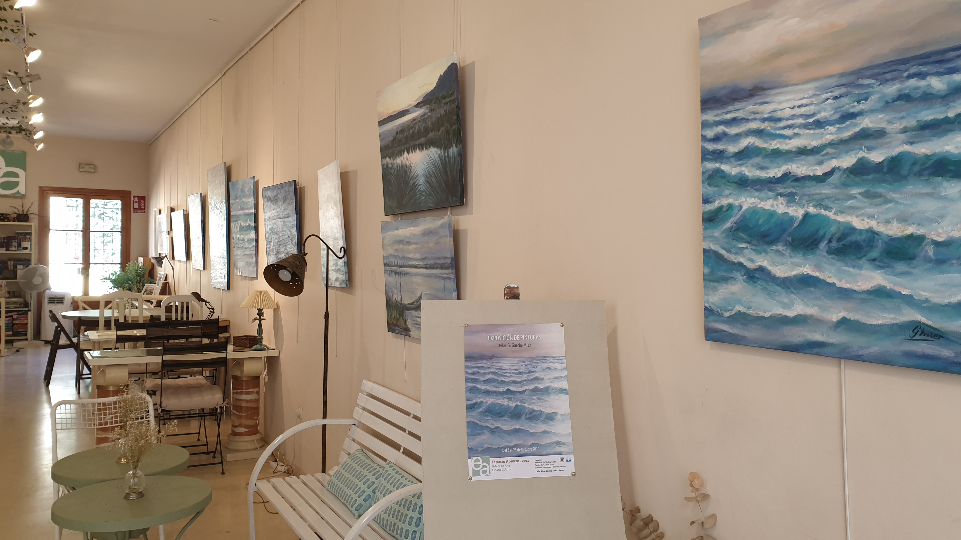 El pasado Jueves tuve el honor de inaugurar mi exposición de pinturas y acuarelas en la galería Espacio Abierto Jerez. Son un total de 37 cuadros de diversos tamaños, realizadas en acuarela, acrílico y óleo, principalmente marinas, tema que me apasiona, con las que quiero dar a conocer mi trabajo reciente. La muestra permanecerá hasta el 25 de Octubre.